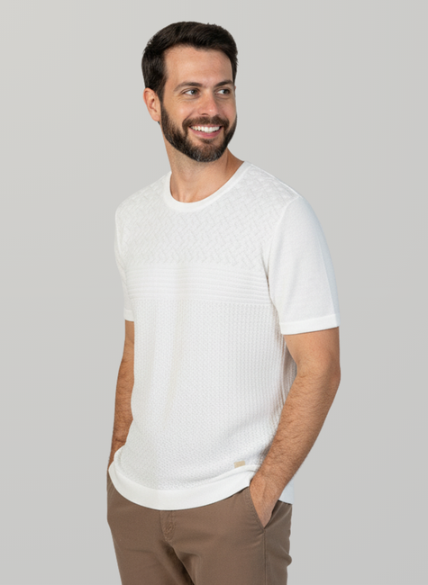 A paleta clara combina com tons terrosos, azuis e pretos, multiplicando opções de look casual masculino. Use com tênis limpo para um visual leve, troque por loafer para elevar o office look ou aposte em bermuda de sarja no passeio. O tricot texturizado confere presença sem exagero e acompanha a rotina com conforto, mobilidade e praticidade, mantendo a identidade da Cobra D'agua sempre em destaque.