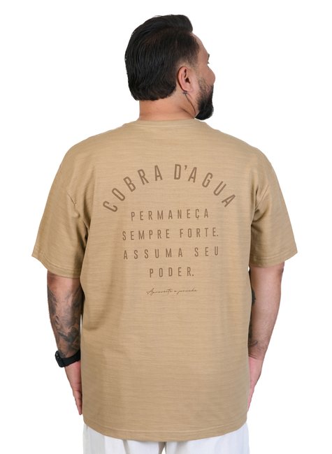 A Camiseta Plus Size Cobra D'agua Jornada - Cáqui é confeccionada em Moletinho Turim 100% algodão, com textura flamê que garante estilo único e toque macio. O tecido premium proporciona respirabilidade e durabilidade, mantendo a leveza necessária para os dias mais quentes. Uma peça feita para quem busca conforto aliado a autenticidade no visual.