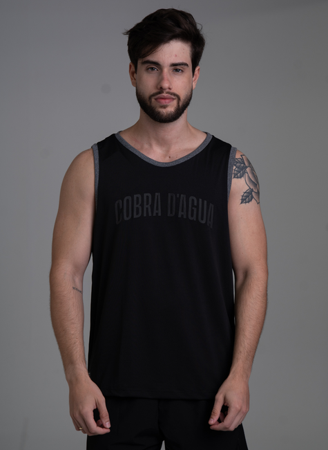 O design em preto traz versatilidade e modernidade, enquanto a estampa frontal Cobra D’água em tonalidade discreta reforça a identidade da marca com sofisticação. O acabamento reforçado nas cavas e na gola garante maior durabilidade e resistência, mesmo com uso frequente.