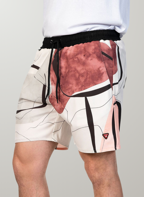 O Abstrato é versátil e resolve do passeio ao happy hour com a mesma atitude: use com t-shirt básica e sneakers para um short masculino de presença; troque por camisa leve e sandália para um visual de praia urbana; com polo, vira casual arrumado. Minimalista no shape e forte no grafismo, ele multiplica opções no guarda-roupa de moda masculina streetwear sem complicar o dia.