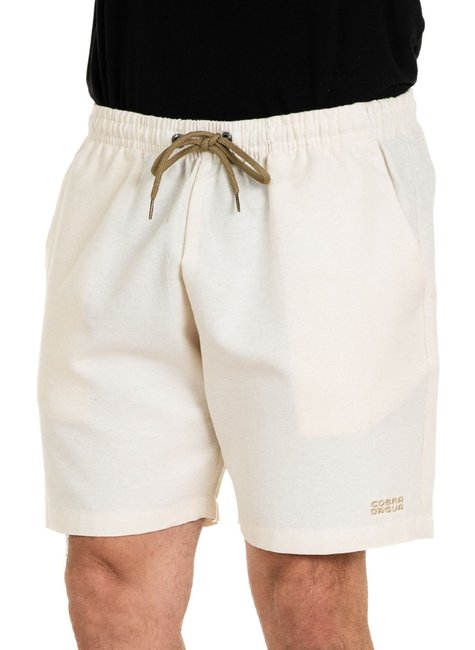 O Short Elástico Cobra D'agua Sustentável - Off White é confeccionado em tecido Ecotex Granite (80% algodão e 20% poliéster), uma malha diferenciada que alia conforto, leveza e responsabilidade ambiental. O algodão garante maciez e respirabilidade, enquanto o poliéster reciclado agrega durabilidade e sustentabilidade, tornando-o uma escolha consciente para o guarda-roupa masculino.